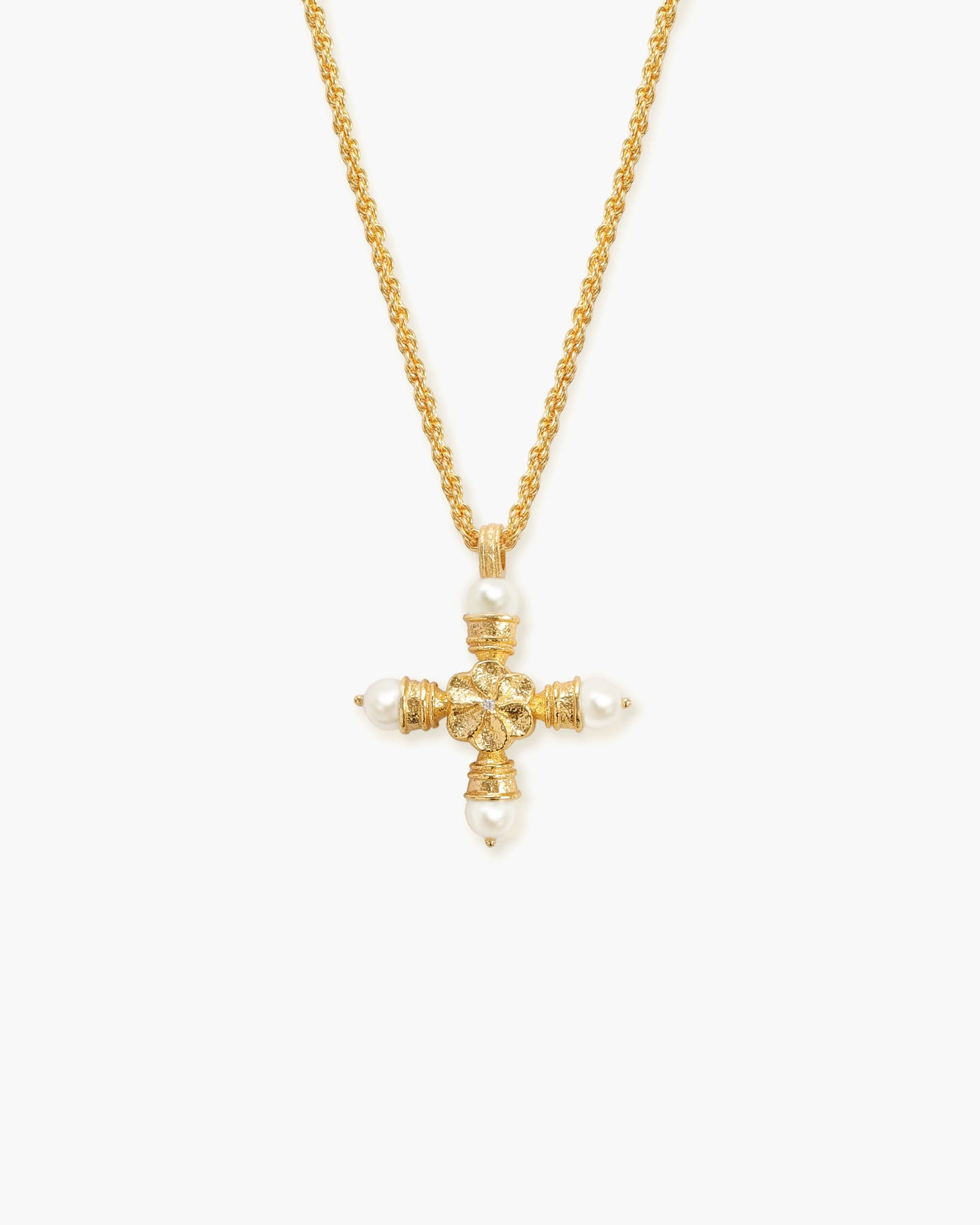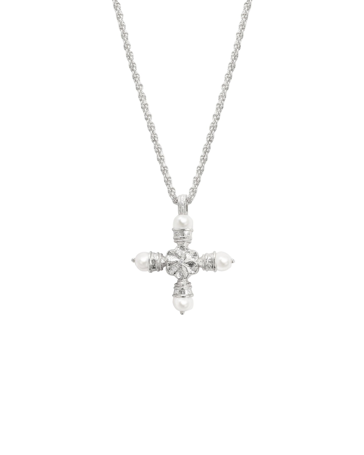 Florence Pearl Cross Silver Necklace