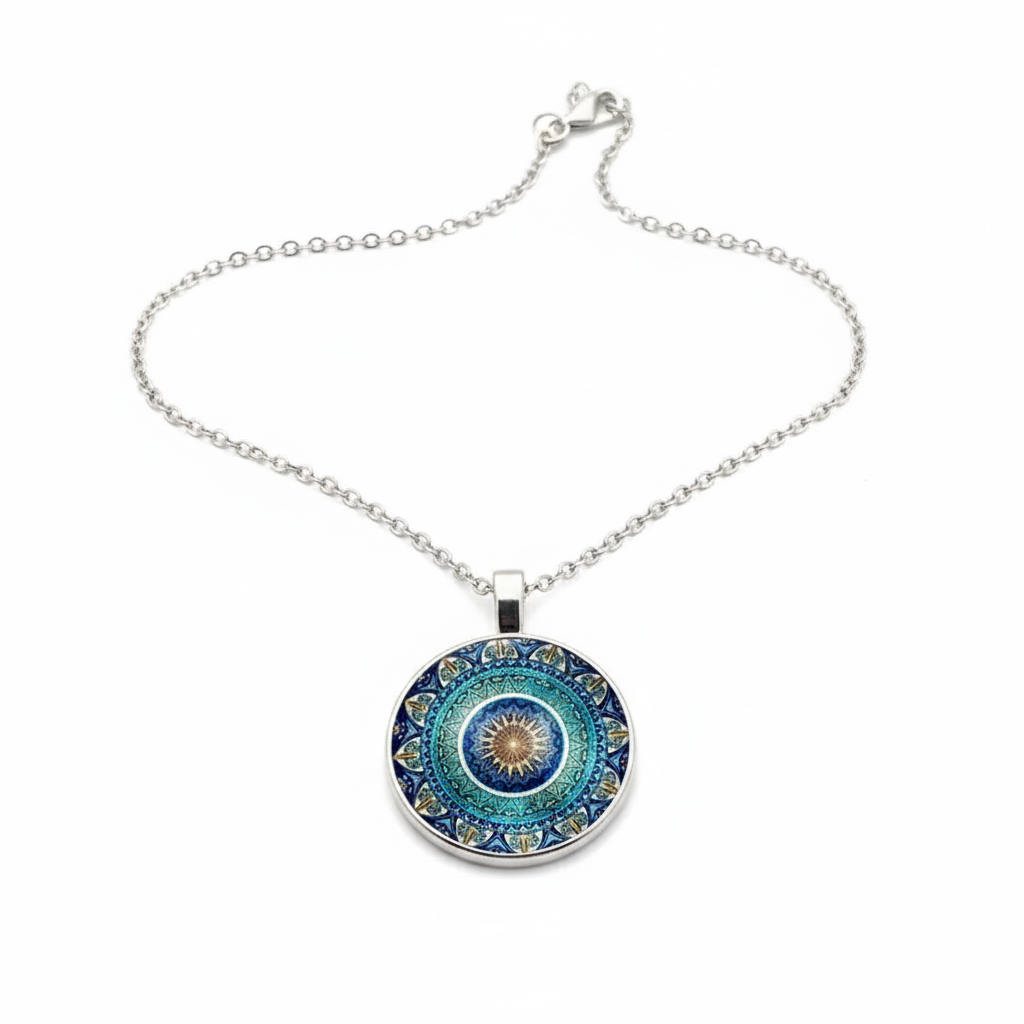 Vintage Round Blue Mandala Necklace