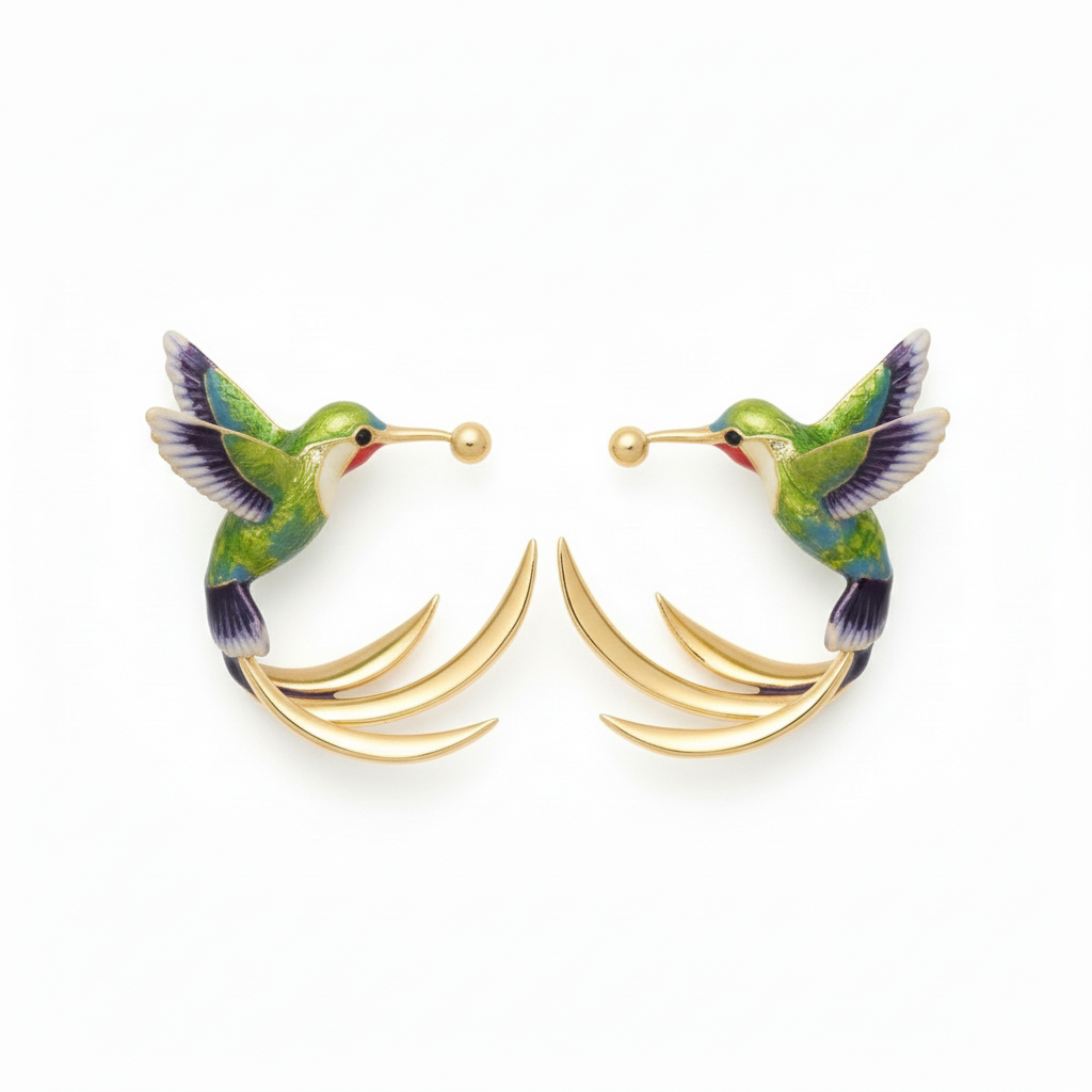 Vintage Hummingbird Enamel Hoops