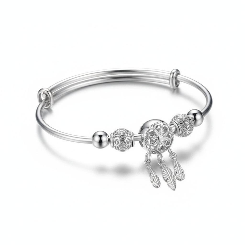 Adjustable Sterling Silver Leaf Charm Bracelet